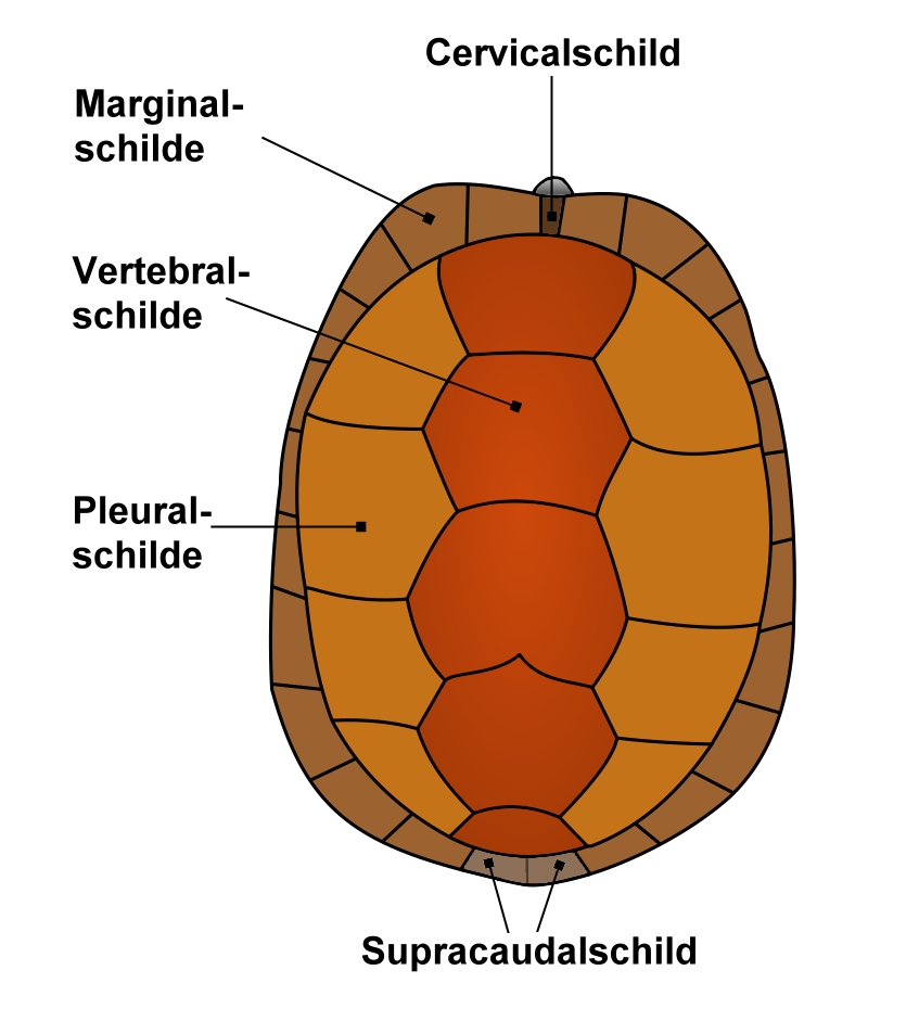 Wenn wir uns die Vertrebralschilde des Panzers anschauen erkennen wir unterschiedliche Maserungen. Bei einem Tier ist in der Mitte ein Strich, wie ein „I“ erkennbar und bei dem anderen Tier sind nur die Randmaserungen erkennbar, wie ein „O“.